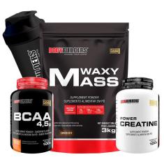Kit Waxy Mass 3kg + BCAA 4,5 100g + Power Creatina 100g + Coqueteleira - Bodybuilders-Unissex