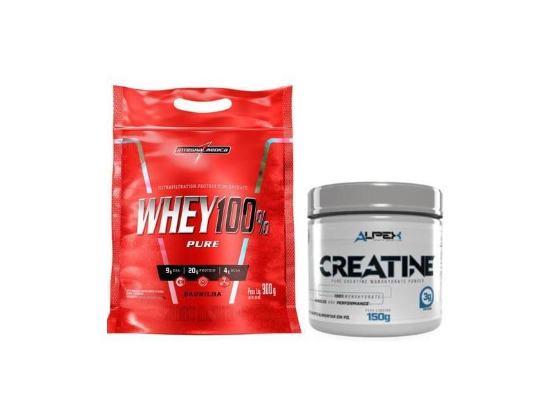 Kit Whey 100% 900g Integralmédica + Creatina 100% 150g Alpex, kit100pu