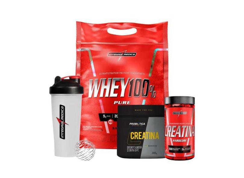 Kit Whey 100% Pure Protein Refil 900G + Coqueteleira - Im + Creatina 3