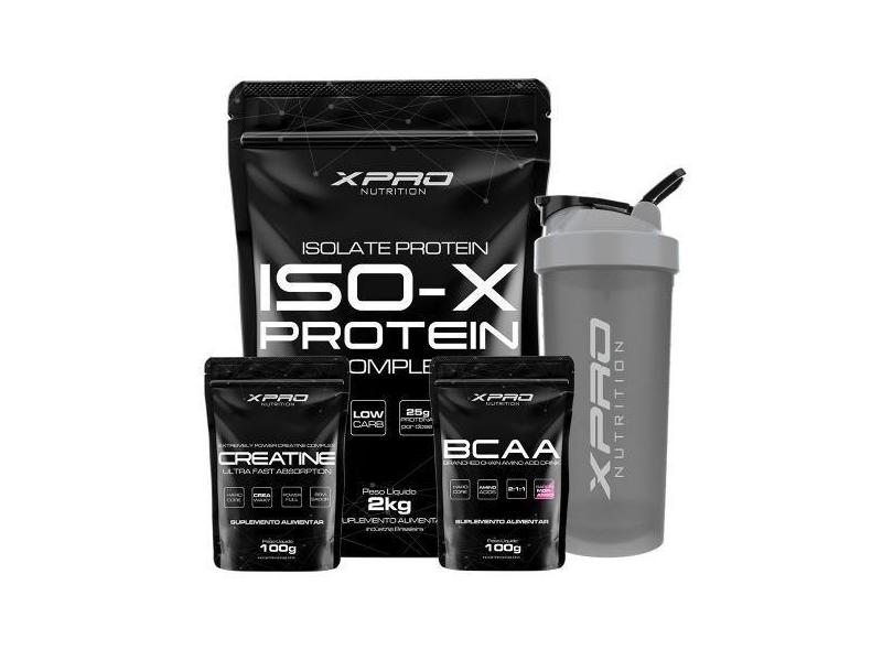 Kit Whey Iso-X 2Kg + Creatina 100G + Bcaa 100G + Coqueteleira 700ml -