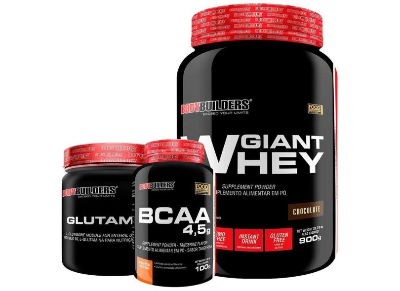 Kit Whey protein 900g + Glutamina 300g + BCAA 100g - Bodybuilders-Unissex