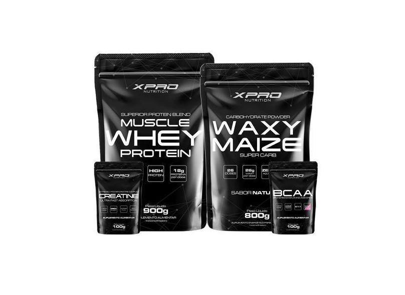 Kit Whey Protein Muscle Whey 900G + Creatina 100G + Bcaa 100G + Waxy M