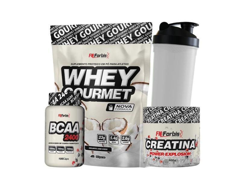 Kit Whey Protein Refil + Creatina 300g + BCAA cáps + Coqueteleira - FN Forbis Nutrition-Unissex