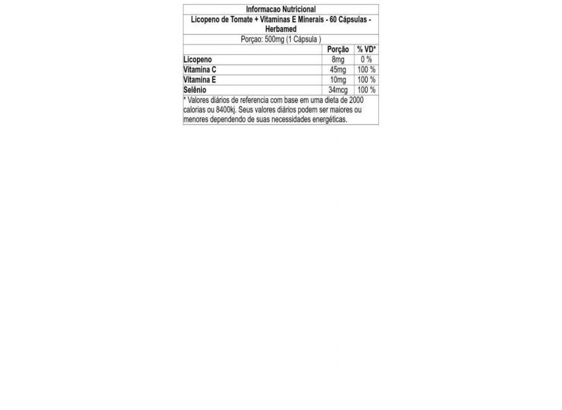 O menor preço encontrado no Brasil para Licopeno de Tomate + Vitaminas E Minerais - 60 Cápsulas - Herbamed atualmente é R$ 73,07.