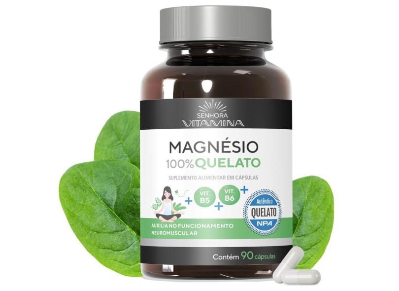MAGNéSIO 100% QUELATO 350MG COM VITAMINAS B5 E B6 (90 CáPSULAS) Senhora Vitamina