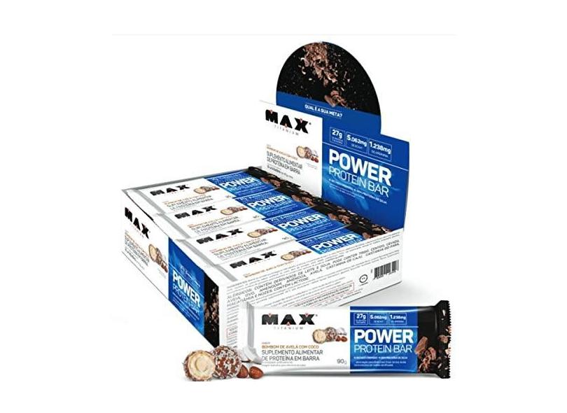 Max Titanium Power Protein Bar - 8 Unidades 90G Bombom De Avelã Com Coco -