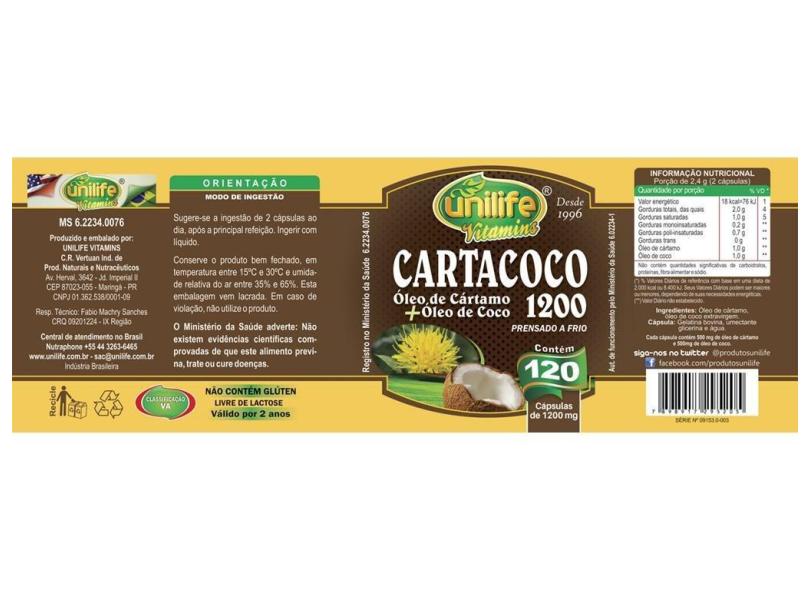 O menor preço encontrado no Brasil para Óleo de cartamo e coco Cartacoco 1200mg Unilife atualmente é R$ 105,93.