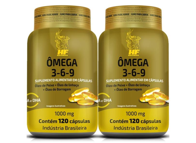 Omega 3 6 9 peixe borragem E linhaça hf suplements 2x120CAPS