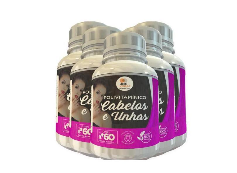 O menor preço encontrado no Brasil para Polivitamínico Cabelos E Unhas 500Mg 60 Cáps Kit Com 5 Potes - Lider V atualmente é R$ 61,79.
