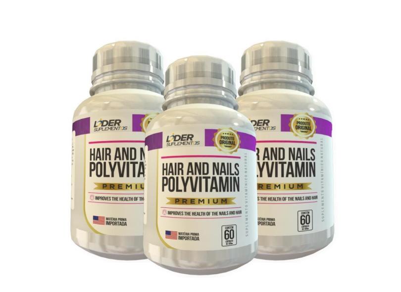Polivitamínico Cabelos/unhas Caps 500mg 60 Cápsulas 3 Potes