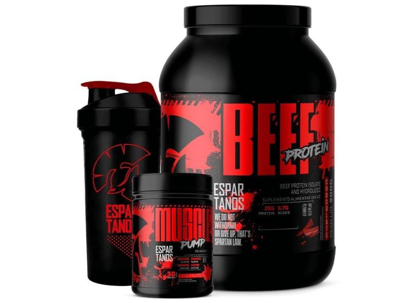 O menor preço encontrado no Brasil para Proteína da carne - Kit Beef Protein + Pré Treino + Shaker-Unissex atualmente é R$ 129,90.