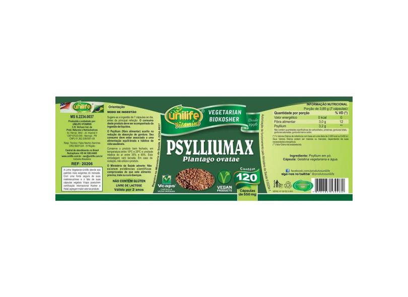 Psylliumax Psyllium 120 Capsulas 550mg Unilife
