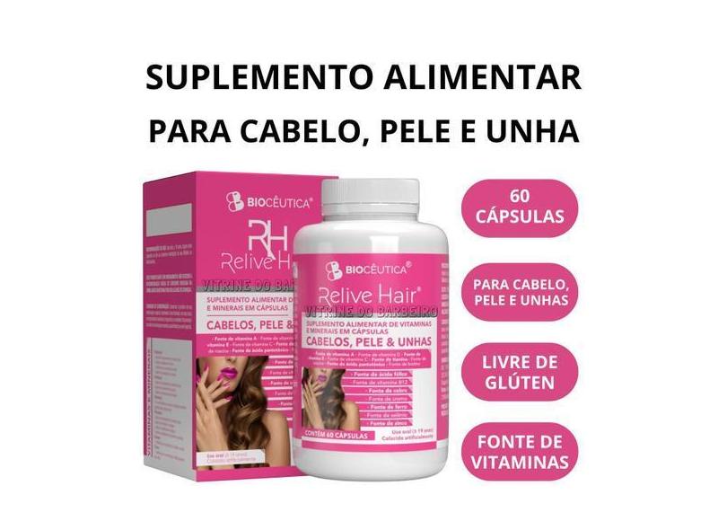Relive Hair 60 Cápsulas Suplemento Para Cabelo Pele E Unhas! - Bioceut