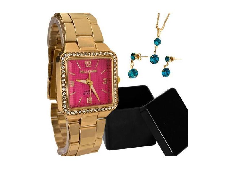 O menor preço encontrado no Brasil para Relógio Feminino Original Quadrado + Brincos Colar Folheado - Azmar Se atualmente é R$ 69,75.