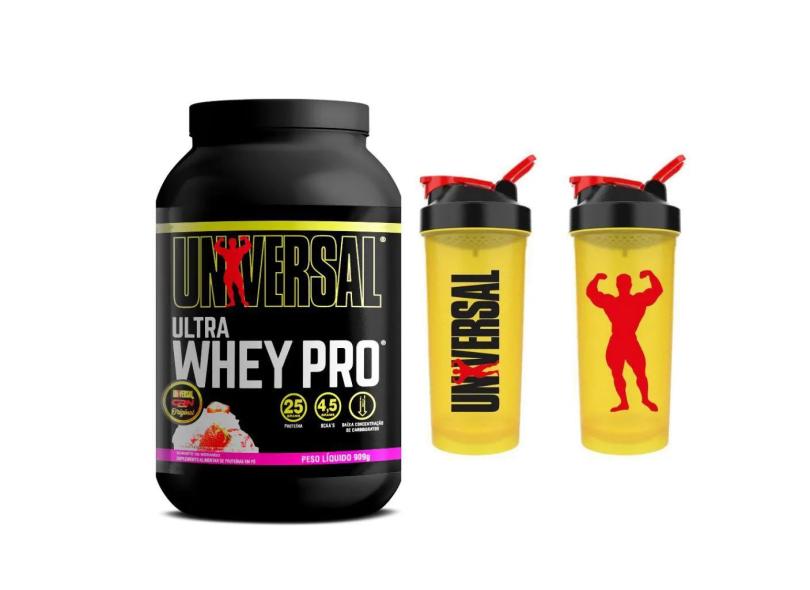 Ultra Whey Pro (909G) + Coqueteleira 600Ml - Universal Nutrition Morango