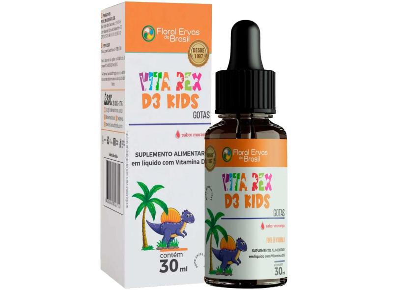 Vita Rex Vitamina D3 Kids Em Gotas - 30Ml - Morango - Floral Ervas Do Brasil
