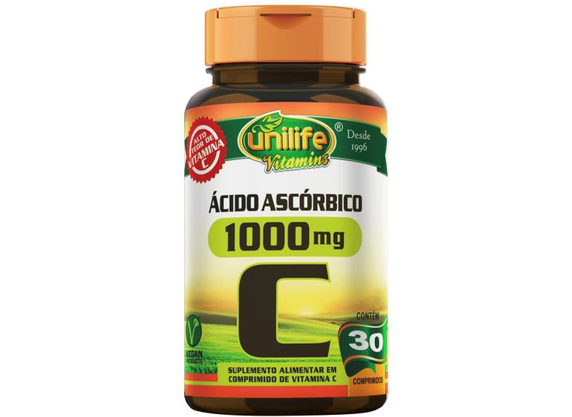 Vitamina C Pure - Acido Ascorbico - 30 Comprimidos 1000mg - sem sabor Unilife Vitamins