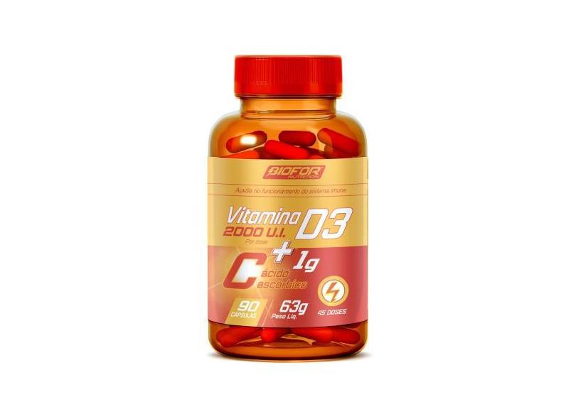 Vitamina D3 2000Ui E Vitamina C 1000Mg 90 Cápsulas Sem Sabor - Biofor