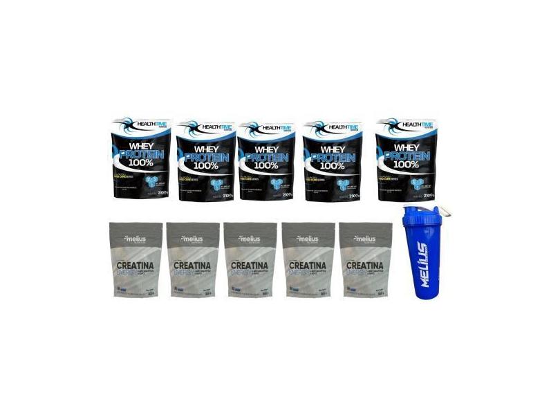 Whey 100% Health Time 5X 2.1 Kg + Creatina 5X 300G + Coqueteleira 700