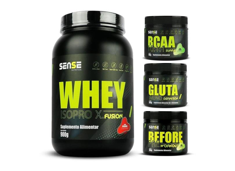 O menor preço encontrado no Brasil para Whey Protein 900g + Bcaa + Glutamina + Pré Treino - Sense-Unissex atualmente é R$ 129,90.