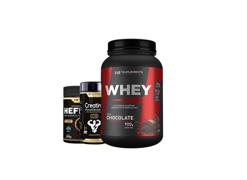 Whey Protein Chocolate 900G + Pré Treino Blueberry Creatina - Hf Suple