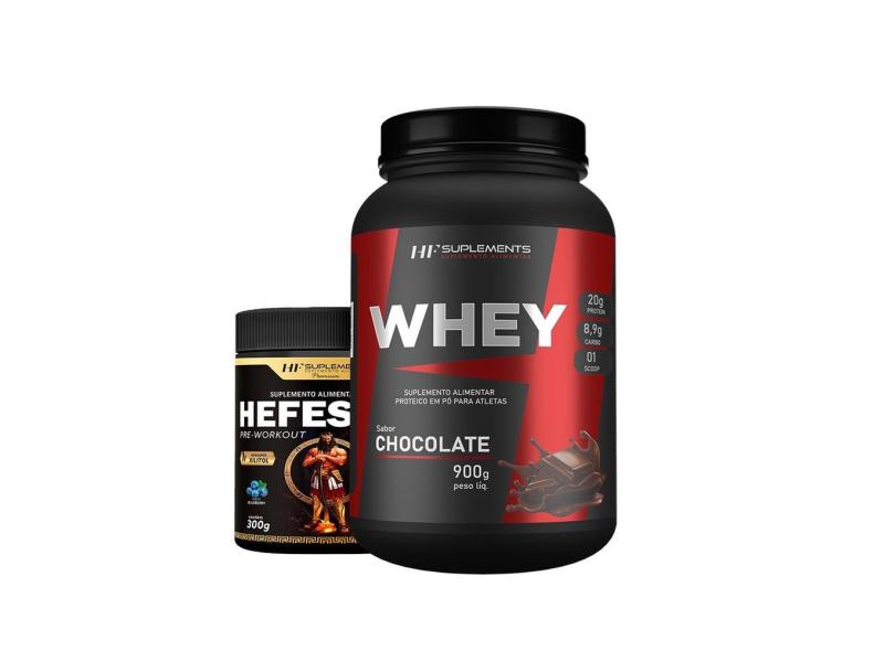 Whey protein chocolate 900G + pré treino hefestus blueberry