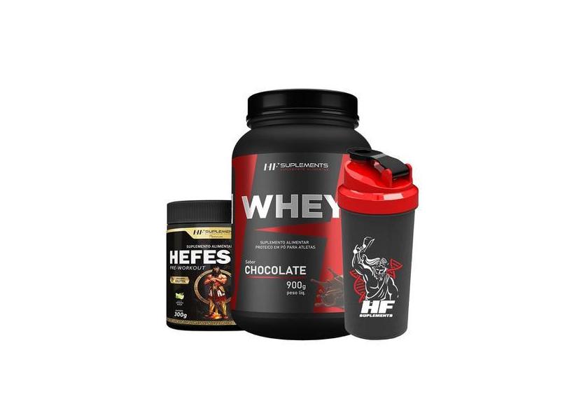 Whey Protein Chocolate 900G + Pré Treino Limonada + Coq - Hf Suplement
