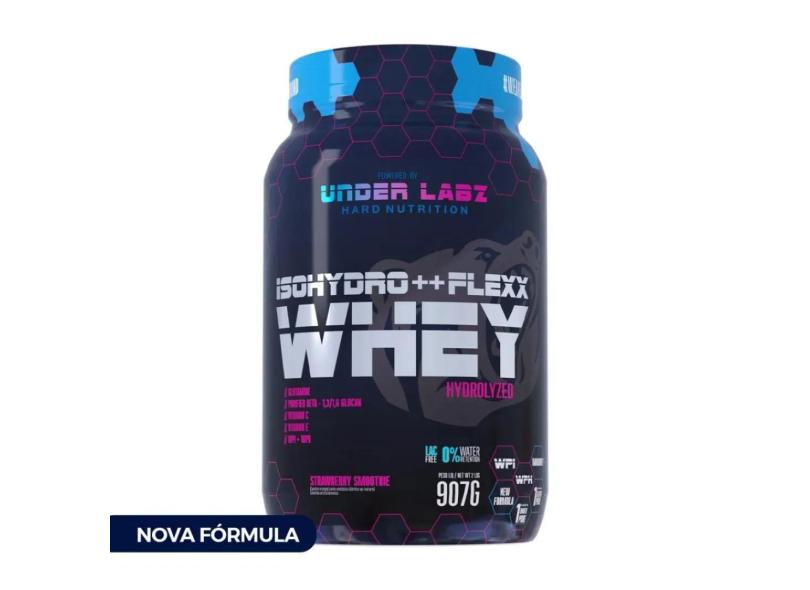 Whey Protein Hidrolisado Isohydro ++ Flexx 907G Pote Under Labz Morango