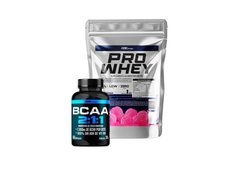 Whey Protein Refil 1Kg + Bcaa 2:1:1 2000mg - Pote 60 Cápsulas - Pro He