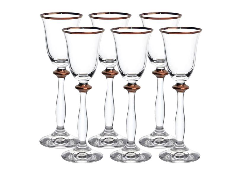Jogo De 6 Tacas Para Licor Angela Bronze Rim Em Cristal Ecologico 60ml A17cm
