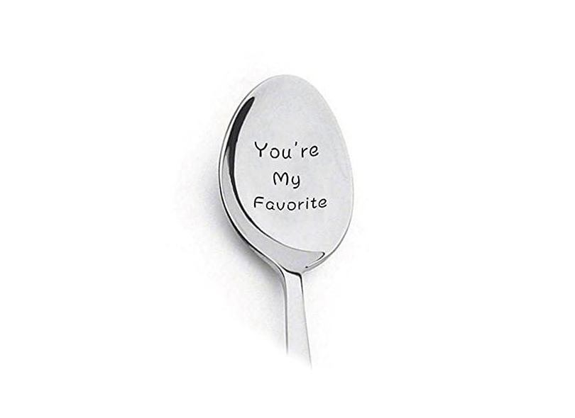 Amkya Colher de aço inoxidável gravada, colher de sorvete, melhor presente para o dia dos pais, aniversário, Natal, espelhado, polido, conjunto de colheres modernas para casa, cozinha ou restaurante
