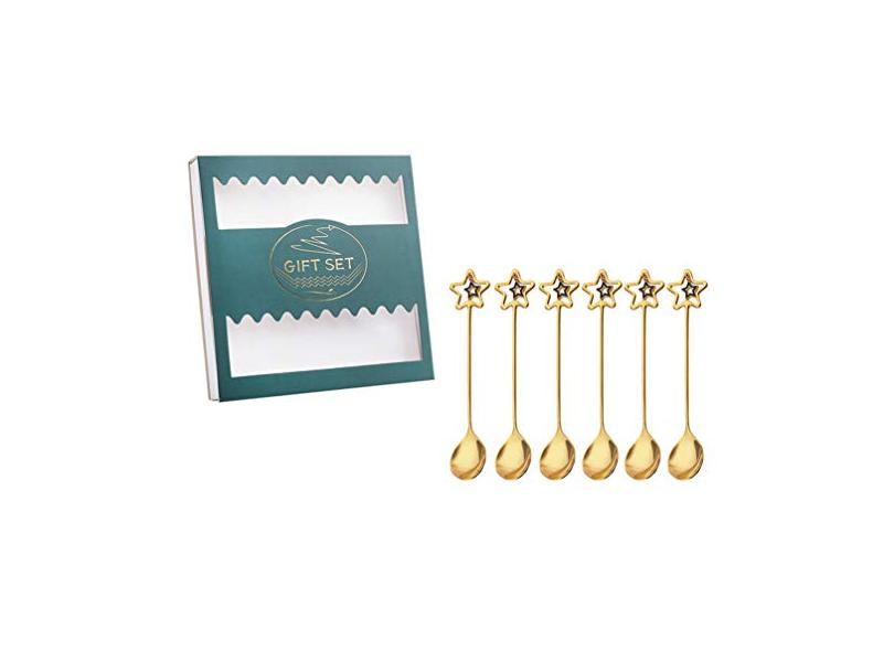 Cabilock Conjunto de 6 peças de colheres de café de aço inoxidável, colher de café, sobremesa, colher de chá de café, para mexer, misturar, açúcar, mexer, sorvete, bolo