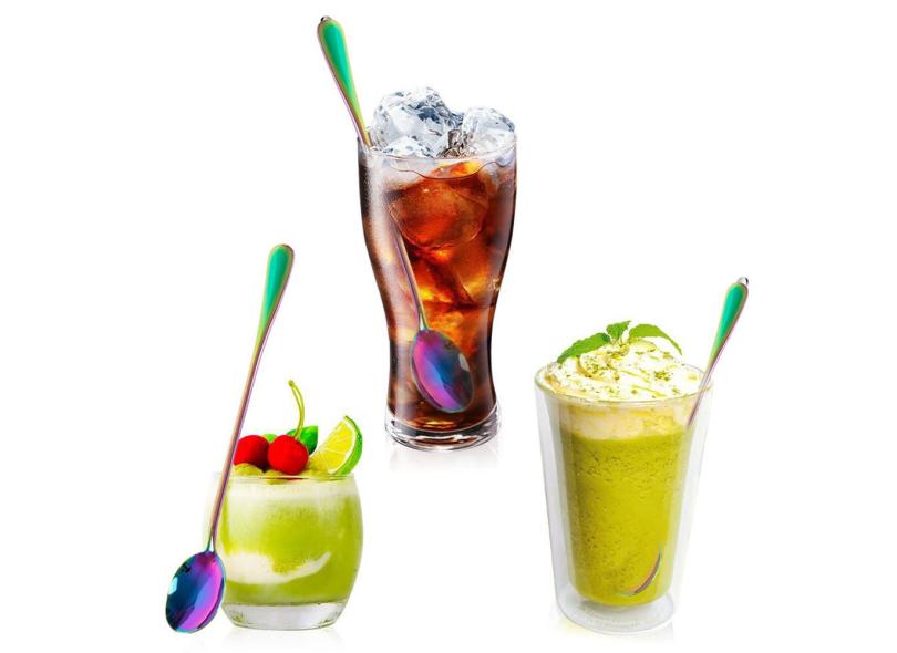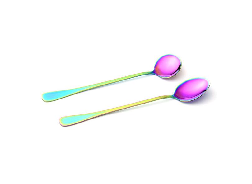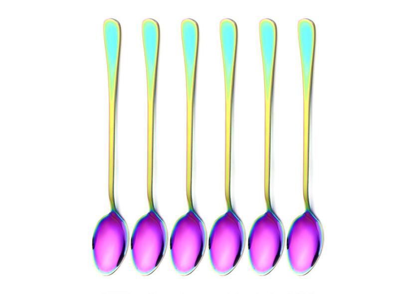 Colher de cabo longo de 6 unidades de aço inoxidável com sorvete de sobremesa arco-íris colher de café