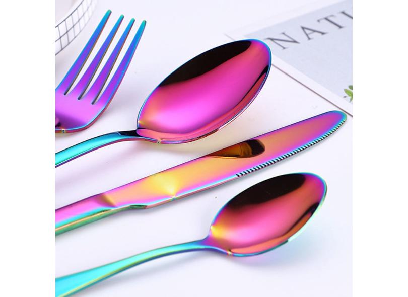 Conjunto de colher de talheres de quatro facas para bife de aço inoxidável e colher de garfo coloridas