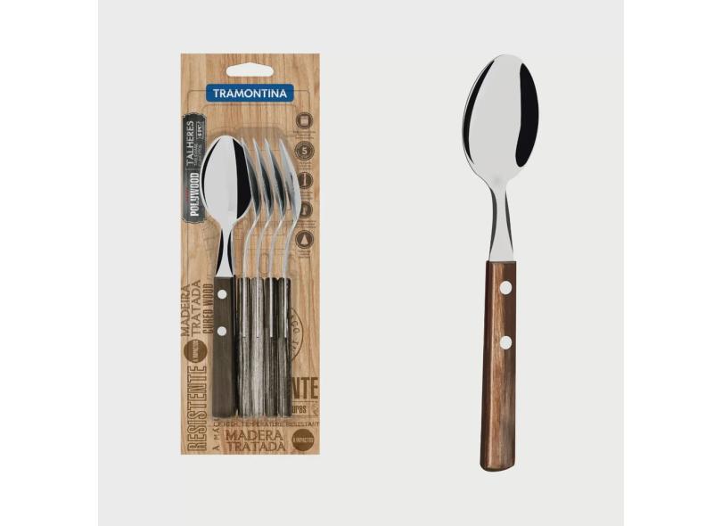 Conjunto de Colheres de Mesa Tramontina com Lâminas em Aço Inox e Cabos em Madeira Polywood Castanho 6 Peças Tramontina