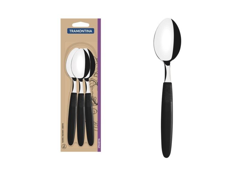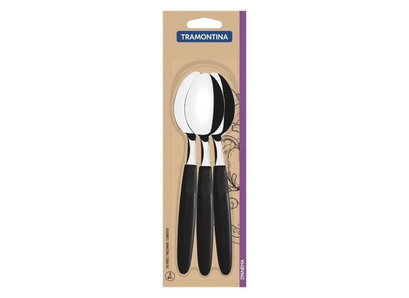 Conjunto de Colheres de Mesa Tramontina Ipanema com Lâminas em Aço Inox e Cabos de Polipropileno Preto 3 Peças