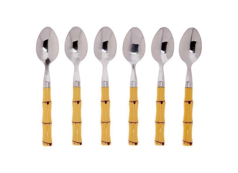 Jogo 6 Colheres Chá Aço Inox Cabo Plástico Bambu 16Cm