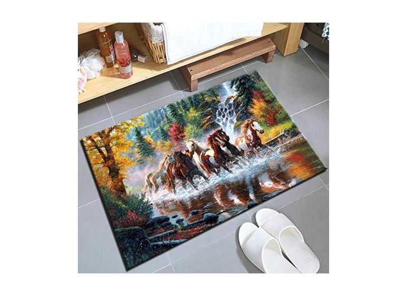 HVEST Tapete de cavalo Galope Cavalos Correndo no Rio Tapete Antiderrapante para Sala de Estar, Quarto, Cozinha, (3,5 x 5,5 cm)