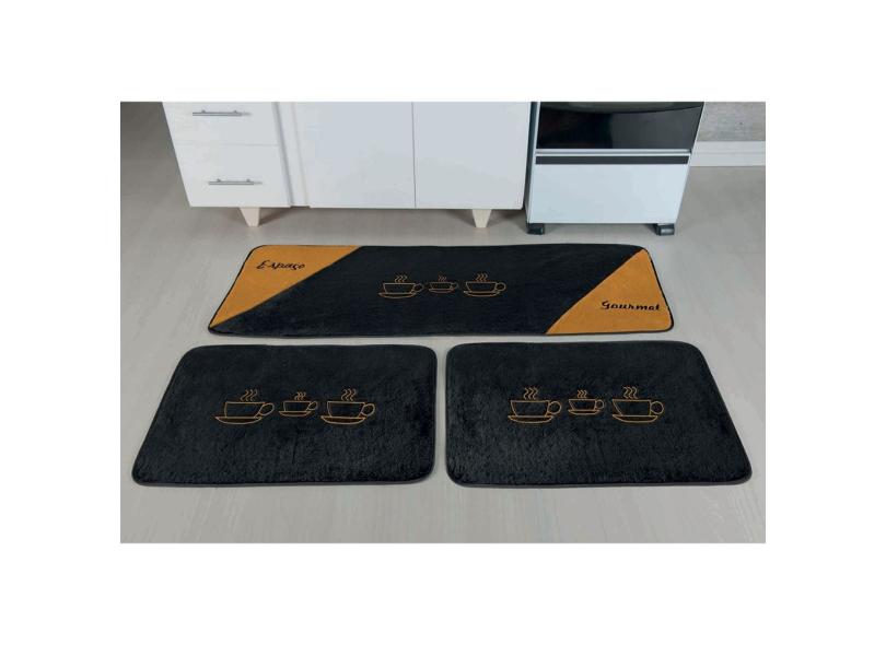 Jogo de Tapete de Cozinha Pimenta Café 3 Peças Antiderrapante