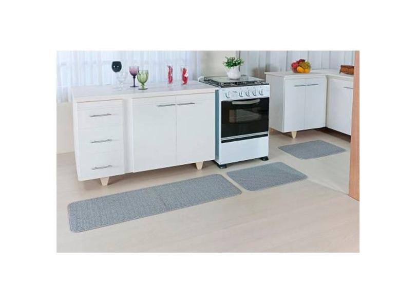 Jogo Tapete Cozinha 3 Peças Relevo Prata
