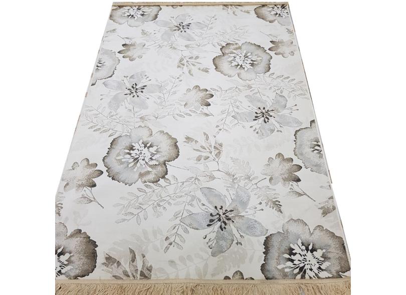 Tapete Belga 1,35 x 1,95 mts. Fino, Estampa Floral 1.8.4.5 - Tamanho equivale 1,4x2 - Linha Premium - Algodão e Viscose, Variantes de , camurça e fundo Creme.