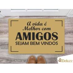 Tapete Capacho Decorativo, Coleo Frases, A vida melhor com amigos, sejam bem vindos