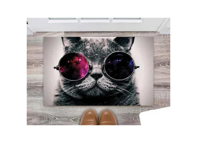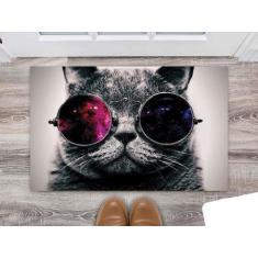 Tapete Capacho Decorativo Entrada Porta Sala Gato com óculos