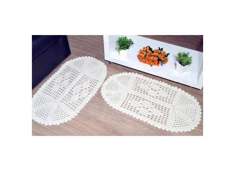 Tapete Multiuso Crochê Barbante Cru Oval (par) 2 Pçs
