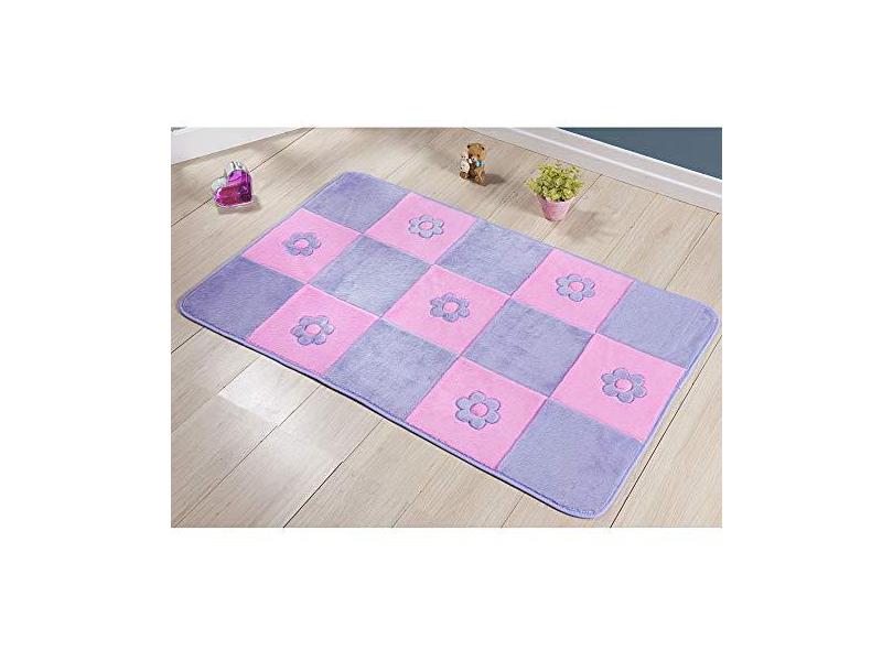 Tapete Passadeira Pelúcia Quarto Infantil Margaridas Premium Antiderrapante - Lilás