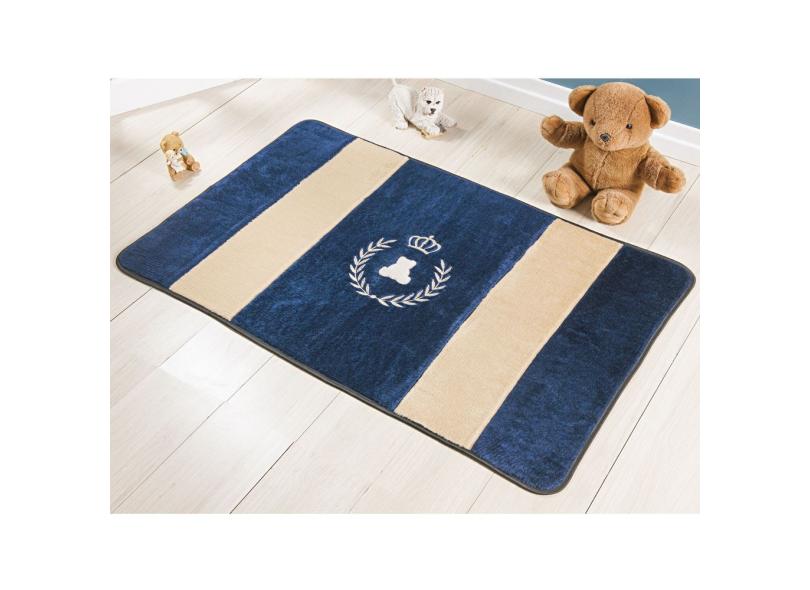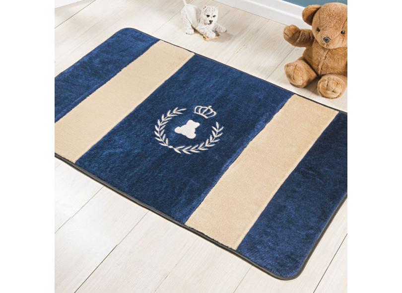 Tapete Passadeira Pelúcia Urso Coroa Realeza Premium Antiderrapante - Marinho