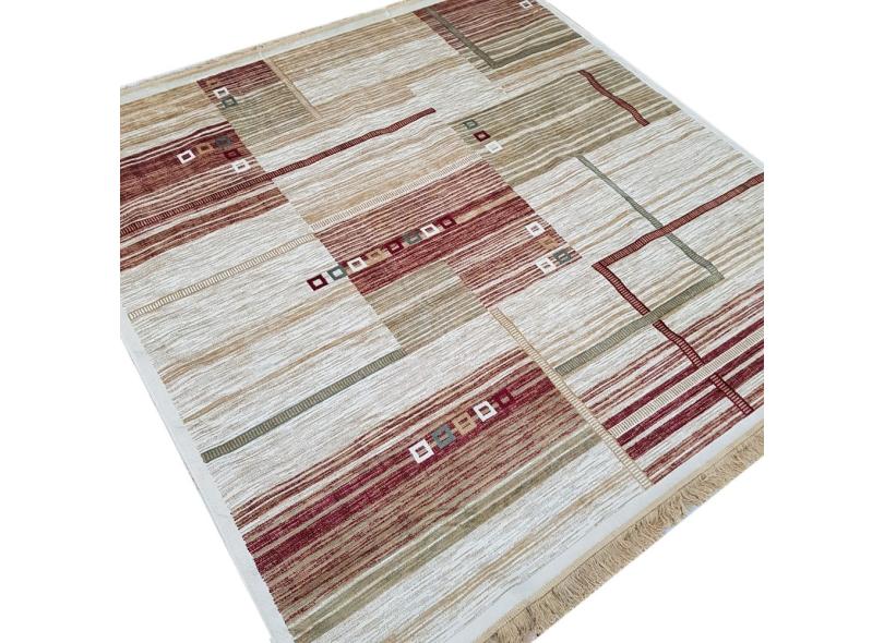 Tapete Quadrado 2,00 x 2,00 mts , Belga Moderno Fino - com franja - 5.0.4.I.V Tamanho 2x2 , Cores Vinho ado, Caramelo, Creme e verde.