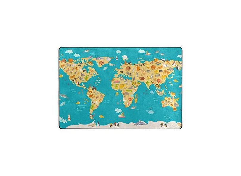 U Life Lindo Mapa-Múndi Animal Geografia Tapete de Área Grande Tapete para Entrada, Entrada, Sala de Estar, Quarto, Cozinha, Escritório, 91 x 61 cm e 182 x 121 cm