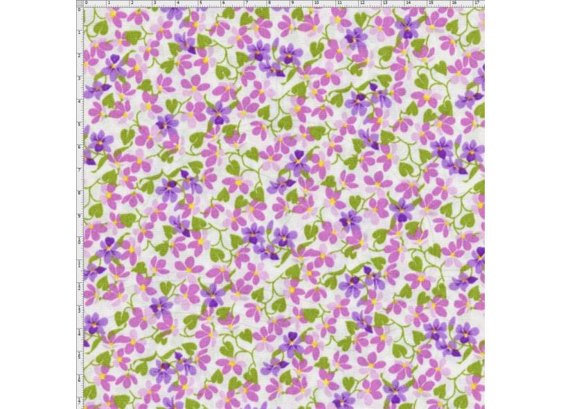 Tecido Estampado para Patchwork - Petits Roses II Floral Cheio Fundo com Flores Lilás (0,50x1,40)