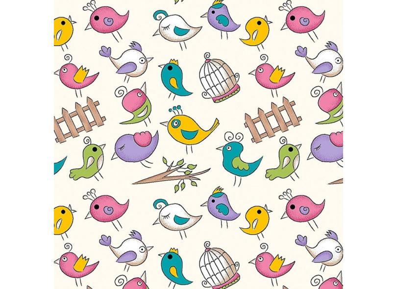 Tecido Patchwork Fofurices Mini Birds Creme 12701
